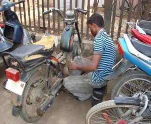 Mr. Bhubana Mahanand s/o Sri Kishan Mahanand from Nanajhar village of Maninga Grampanchayat of Titlagarh Block. His educational qualification is undermatric. He was working in Titlagarh Radhamohan motorcycle garage without any remuneration except fooding. He has taken admission in motor cycle repairing training provided by UDYAMA organization. He use to come regular and learned the methods and technique of motor cycle repairing during the four months. after the training for first few months his daily income was Rs. 150-250/- Now he is well equipped and earning better amount of Rs 400-500/- per day from the same garage. He said that in future he will learn more about the motor cycle repairing and make himself capable enough to get employment in Automobiles Company and become a very well skilled motor cycle mechanic. He is very grateful to UDYAMA for providing two wheeler repairing training.